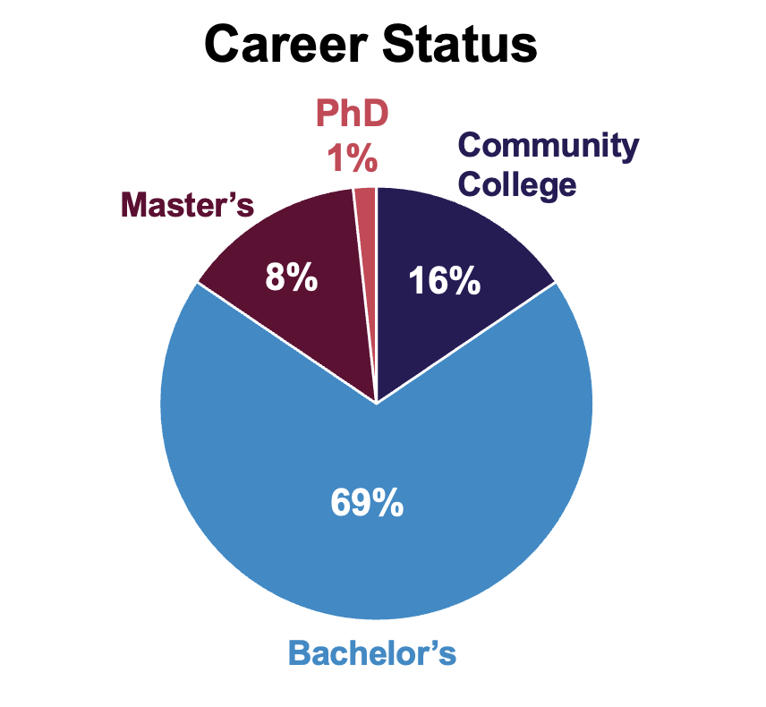 This pie chart represents the level of education the 2025 participants were at during the bootcamp.