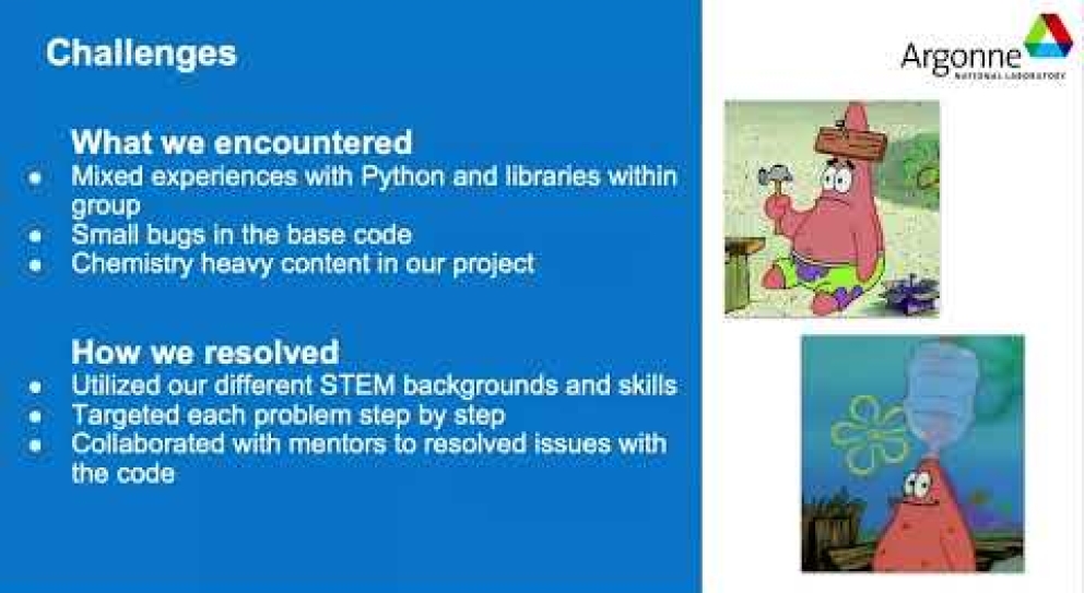 Groups will present 5-minute talks highlighting their project experiences and discoveries made during the week.